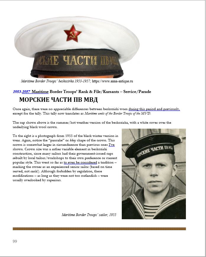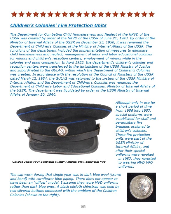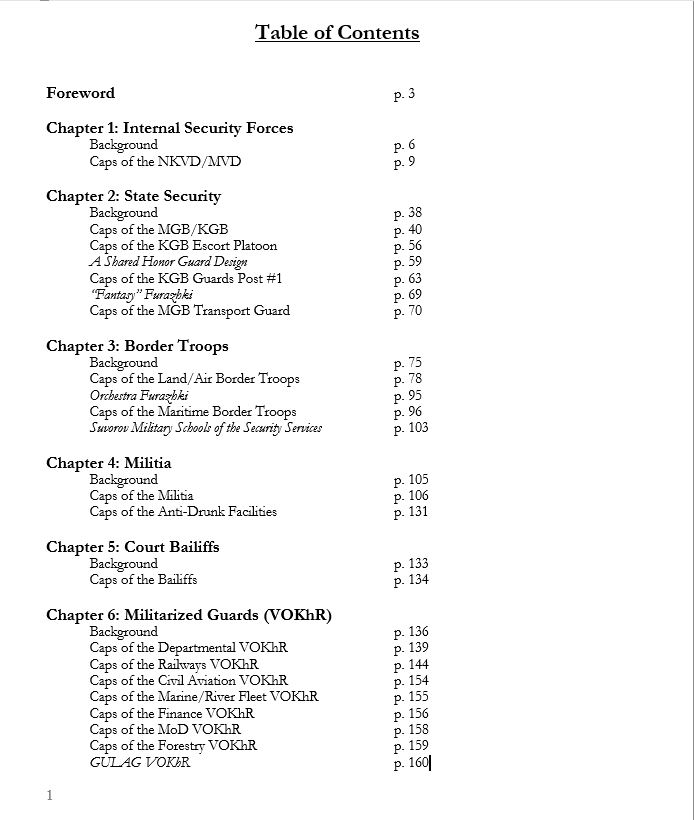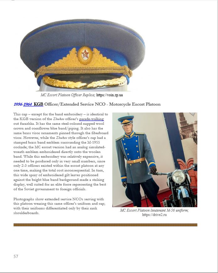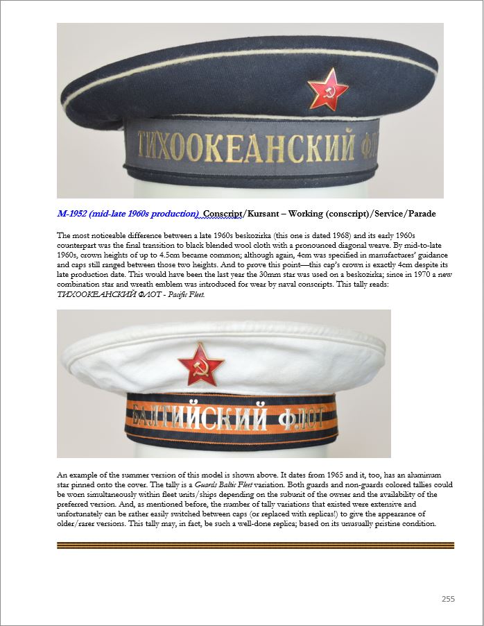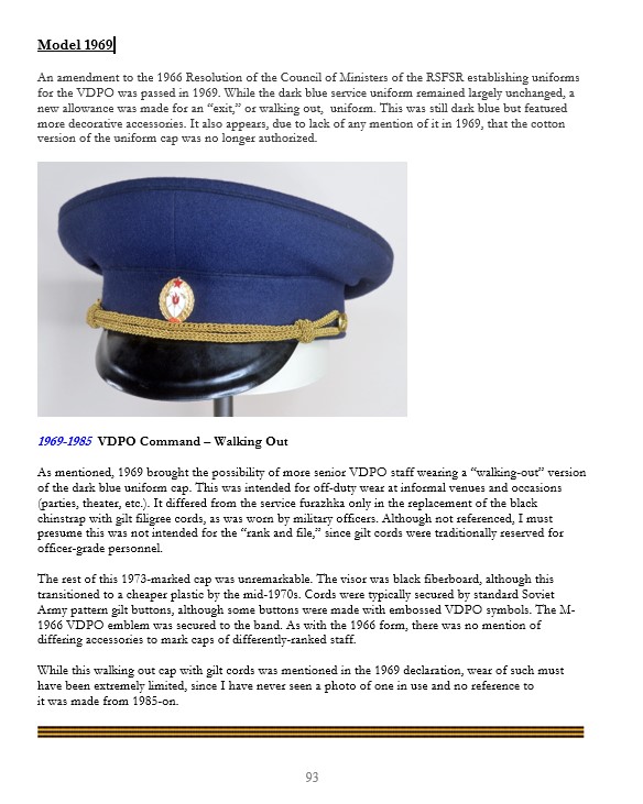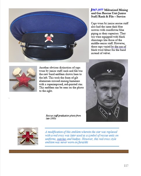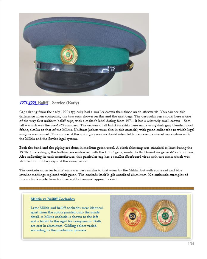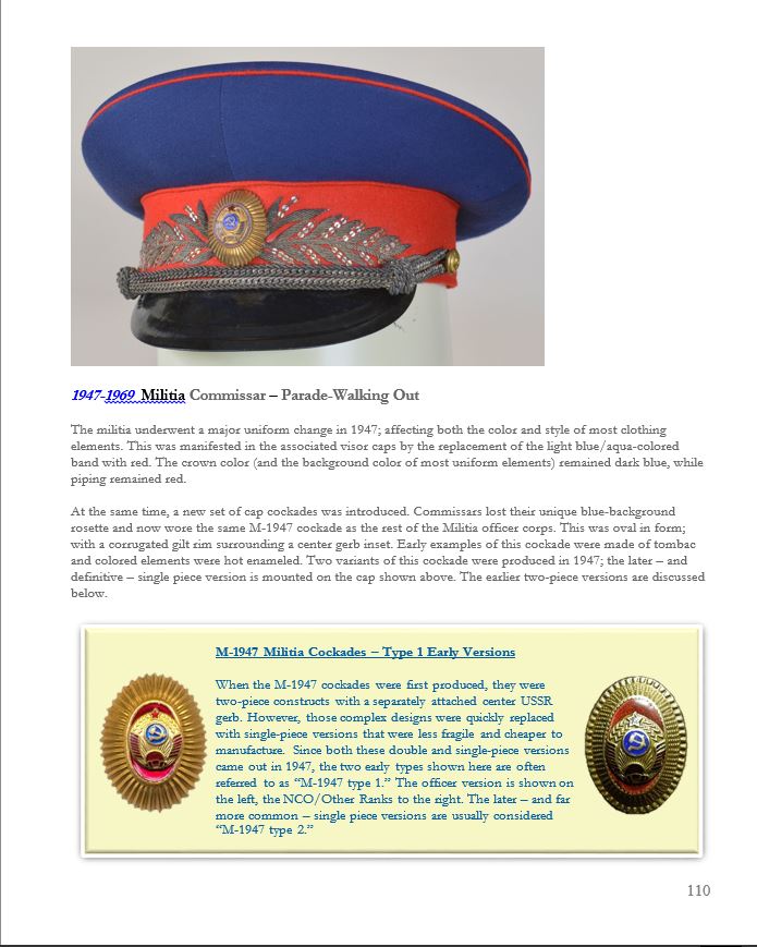 "Uniform Caps of Soviet Ministerial Organizations (Vol. II)" NEW“Uniform Caps of Soviet Ministerial Organizations - The definitive guide to of the Procuracy, the commissariates/ministries of Customs, Foreign Affairs, Finance, State Control, Procurements, and Power, and of Fire Protection and other uniformed agencies of the Soviet era. This book will expand on its volume I predecessor by covering visor caps worn by staff of the Procuracy, the ministries of Customs, Foreign Affairs, Finance, State Control, Procurements and Power, as well as a number of lesser-known departmental organizations. Uniform wear by some of these ministries was limited to a brief period of time and/or to small subgroups but are unique or distinctive enough to merit more coverage than you can find in traditional publicized venues. That coverage will, to the best of my ability, illustrate and describe EVERY cap variant making up uniforms belonging to these organizations from 1918 through the collapse of the USSR in 1991. It is printed in the same 8 x 10 inch format as its predecessors, featuring high quality gloss paper and heavy paper stock covers. It consists of 140 full color pages with over 240 photos/illustrations. 8 x 10 inch paperback format printed in full color on heavy, gloss-finished paper, with over 240 photographs and illustrations on 140 pages. Price for the hardcopy paperback is $50 with free postage to addresses within the US. If interested, please send me an email at: randallstewart@comcast.net. Buyers in the U.S. can pay with check or money order or by PAYPAL (to randallstewart@comcast.net) - but please wait for my reply to your email before paying! I must ask Paypal users to add $2.50 to the total price to cover their fees. Purchasers outside the U.S. are encouraged to use PAYPAL if available to them but if not, contact me at randallstewart@comcast.net and we can discuss other payment arrangements and postage costs. Some page samples from this book are shown below: